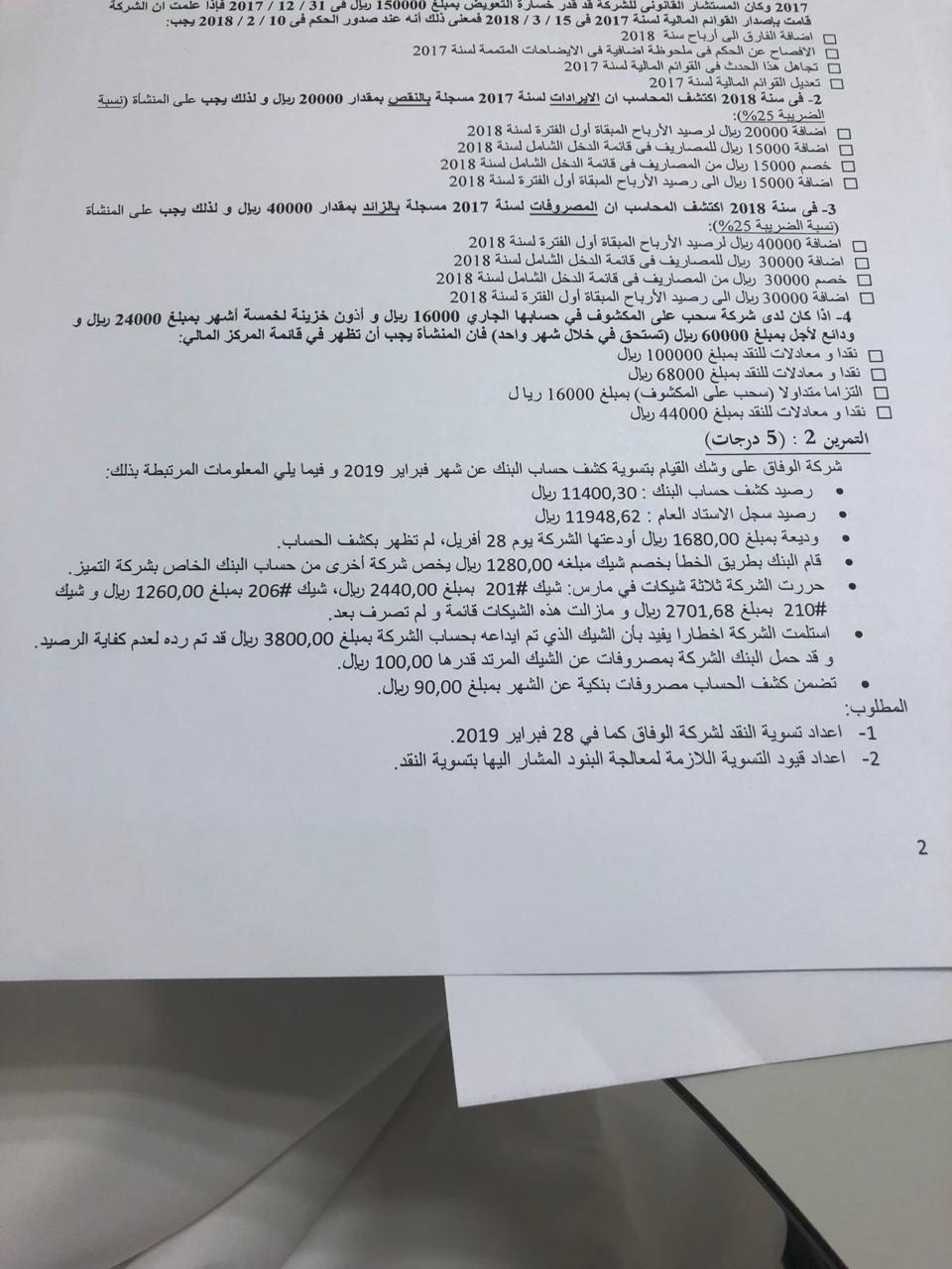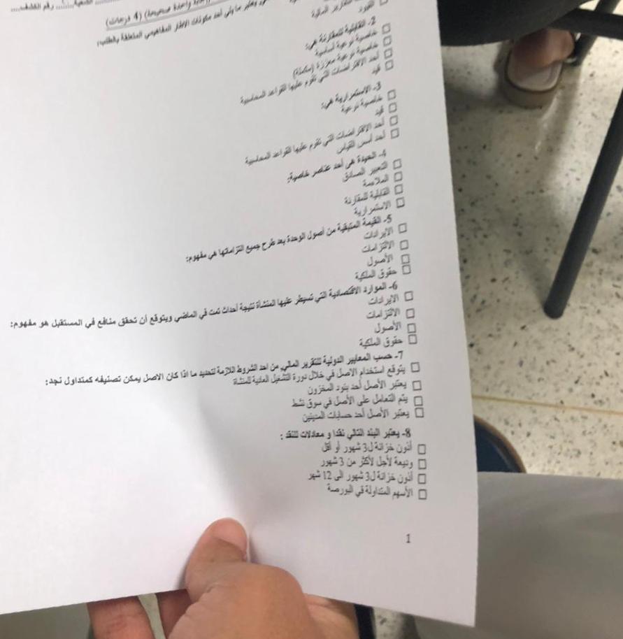 » اختبار المحاسبة المتوسطة 1 الميد الأول